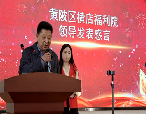 黄陂区横店福利院张绍兵院长上台对本次捐赠活动发表感言:感谢大家放下休息时间,为横店福利院老人送温暖、献爱心物资,这对于横店福利院而言,是一种工作激励和鼓励,也是对该院各项工作的支持,表示有信心、有决心把各项服务做得更好更完美。