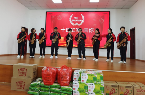 领导讲话结束后,我们由黄陂区木兰情歌协会采用的音色美妙的萨克斯进行演奏的《十送红军+画你》拉开了本次“五一”文艺汇演的序幕,带来对党对祖国对人民由衷的爱,点燃了现场气氛,接下来的节目更是丰富多彩:舞蹈《相思月》《太湖美》《爱上你是一个错》《马背上的情歌》、男声独唱《游牧时光》、表演唱《红尘路上慢慢走》、萨克斯演奏《呼伦贝尔大草原》《我爱你中国》、大合唱《走向复兴》共计十个节目表演,致敬新征程道路上辛勤耕耘的劳动者们,也给横店福利院老人们增添生活的乐趣。