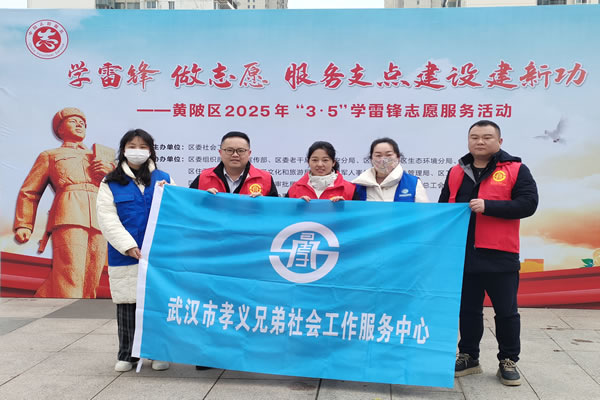 武汉市孝义兄弟社会工作服务中心受邀黄陂区委社会工作部主办“黄陂区 2025 年3·5学雷锋志愿活动”,于2025 年 3 月 4 日(星期二)下午 14:30,在黎元洪广场展开。