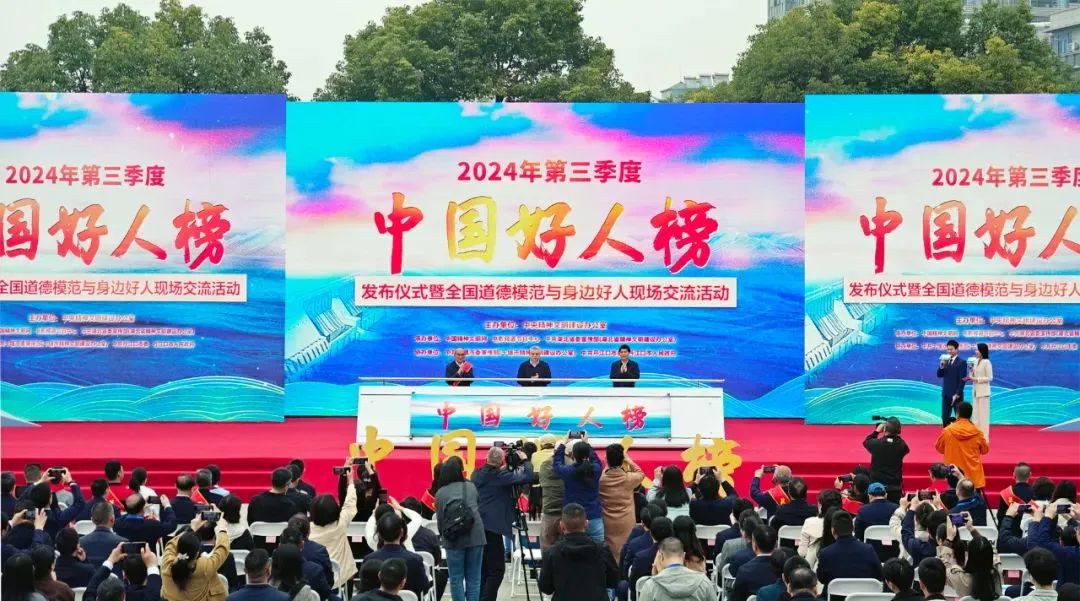 11月12日,2024年第三季度“中国好人榜”发布仪式暨全国道德模范与身边好人现场交流活动在湖北省十堰市丹江口新时代文明实践广场举办。